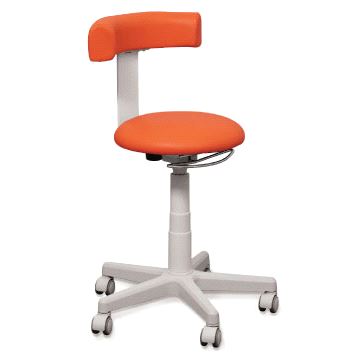 Krakk for profesjonell bruk. 360 ° svingbar selvbremsende myke hjul. Høyden justeres med gassfjær/liftomat. Ryggstøtten kan roteres 180 ° og er dybde-justerbar.