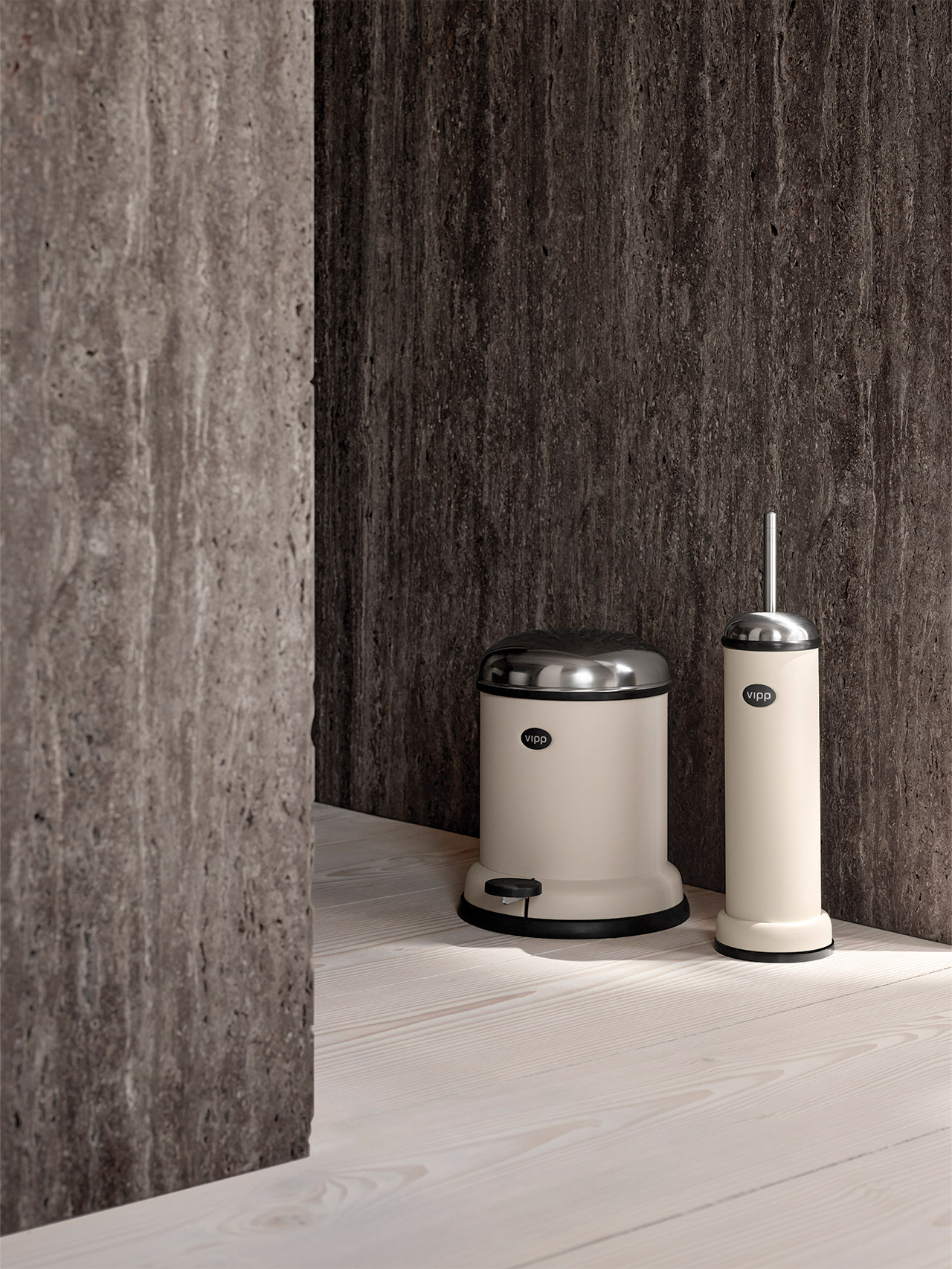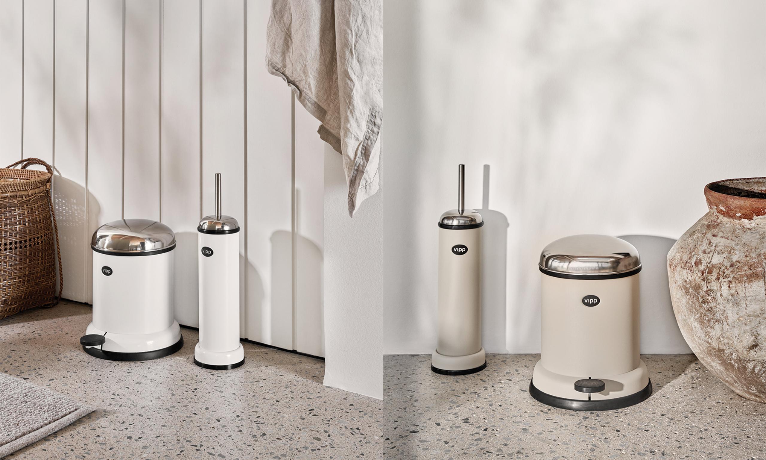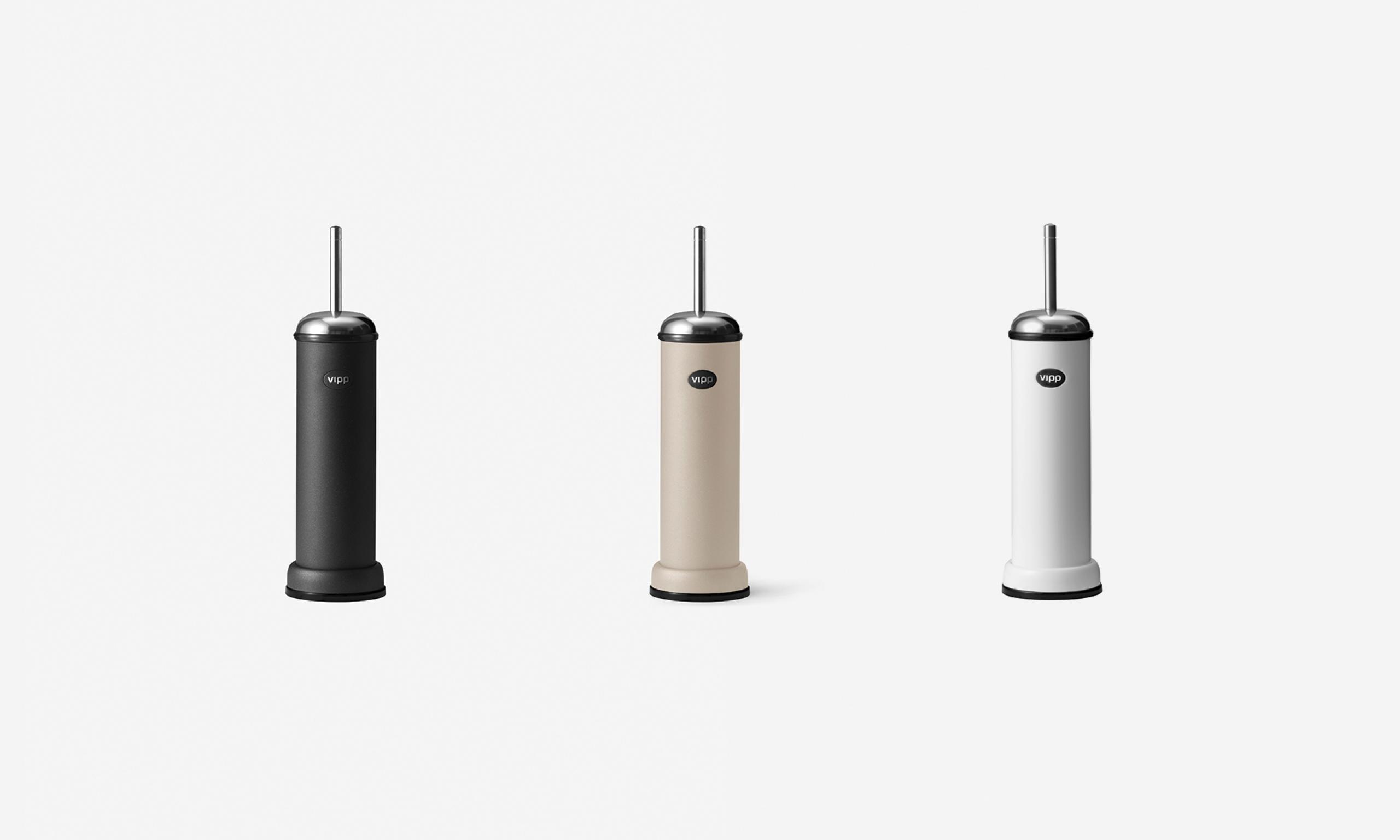 Vipp toalettbørste er designet med klare forbindelser til de klassiske Vipp avfallsbøttene. Toalettbørsten er ekstra tung i bunn, hvilket sikrer stabilitet. Lufttett og luktfri. Ekstra børste kan kjøpes separat. Farger: Hvit eller matt sort, med rustfri topp. Materiale & dimensjoner: rustfritt stål og gummi (43,5 x ø9
